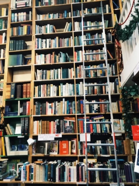 It was a whirlwind trip, we were heading back the next morning. I had my own private room on the top floor, a type of renovated attic space with a low, pointed ceiling and a very comfortable white bed. I woke up before all the boys and decided to walk into town for a coffee. The streets were orange and yellow with fallen leaves, the closest thing fall you get to see in California. The town itself was picturesque, beautiful homes and roads that felt exclusive from the city. I happened to stumble upon Bell’s Books just as they were opening. I must have been the day’s first visitor. I strolled around, admiring the heights at which the books lived and the ladders lining the tall shelves and white balcony. The shelves were decorated with tinsel and red, shiny ornaments for the Christmas season. I lost track of the time, but I was wandering for a while because when I got back the boys were packed and ready to take off without me. I was happy to have found my own little oasis- one, in my mind, that trumped any football game.